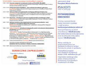 Zapraszamy do wysłuchania inspirujących wystąpień 12 Prelegentów oraz dyskusji 11 Panelistów. Szczegółowy PROGRAM KONFERENCJI znajdą Państwo na stronie www.ckd-edukacja.pl