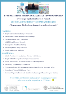 Nagrodzonym serdecznie gratulujemy! Wszystkim dziękujemy za udział w inspirowanej przez nasze Stowarzyszenie działalności na rzecz promowania poradnictwa zawodowego w Polsce.